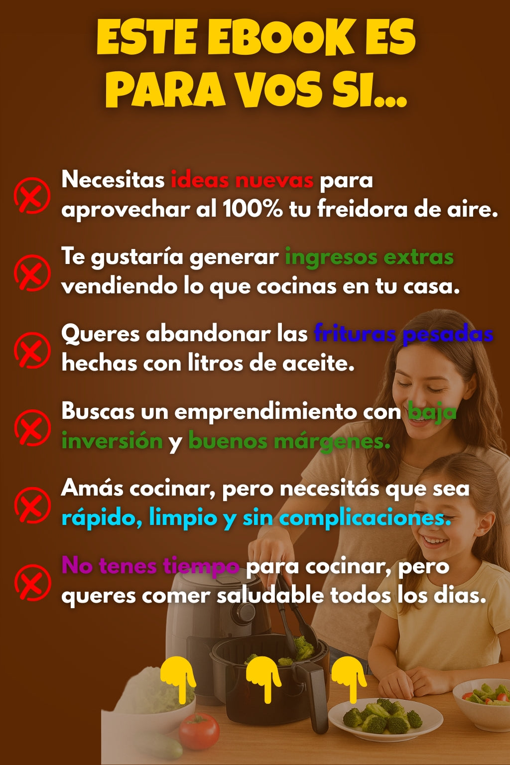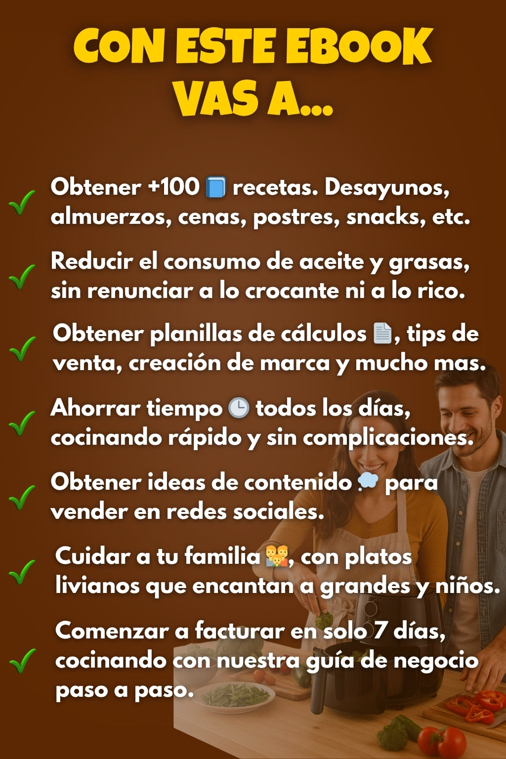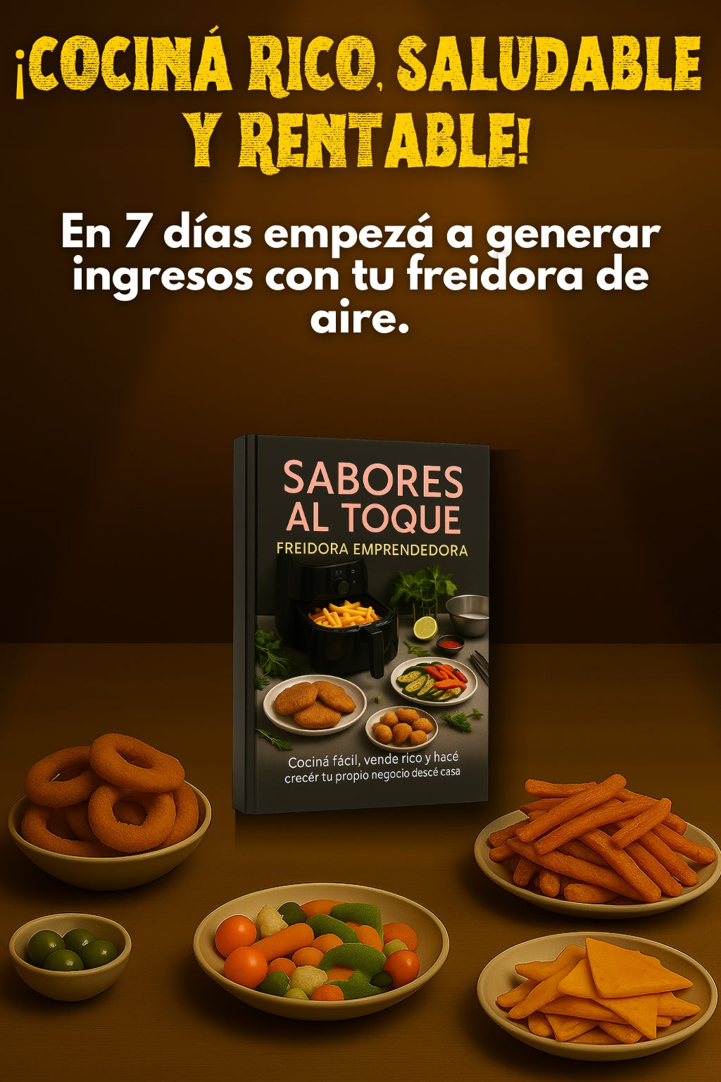 “Sabores al Toque” no es solo un recetario: es una guía práctica para emprender desde tu cocina. Te muestra cómo transformar la freidora en una herramienta de negocio, con estrategias de venta, presentación y redes sociales.